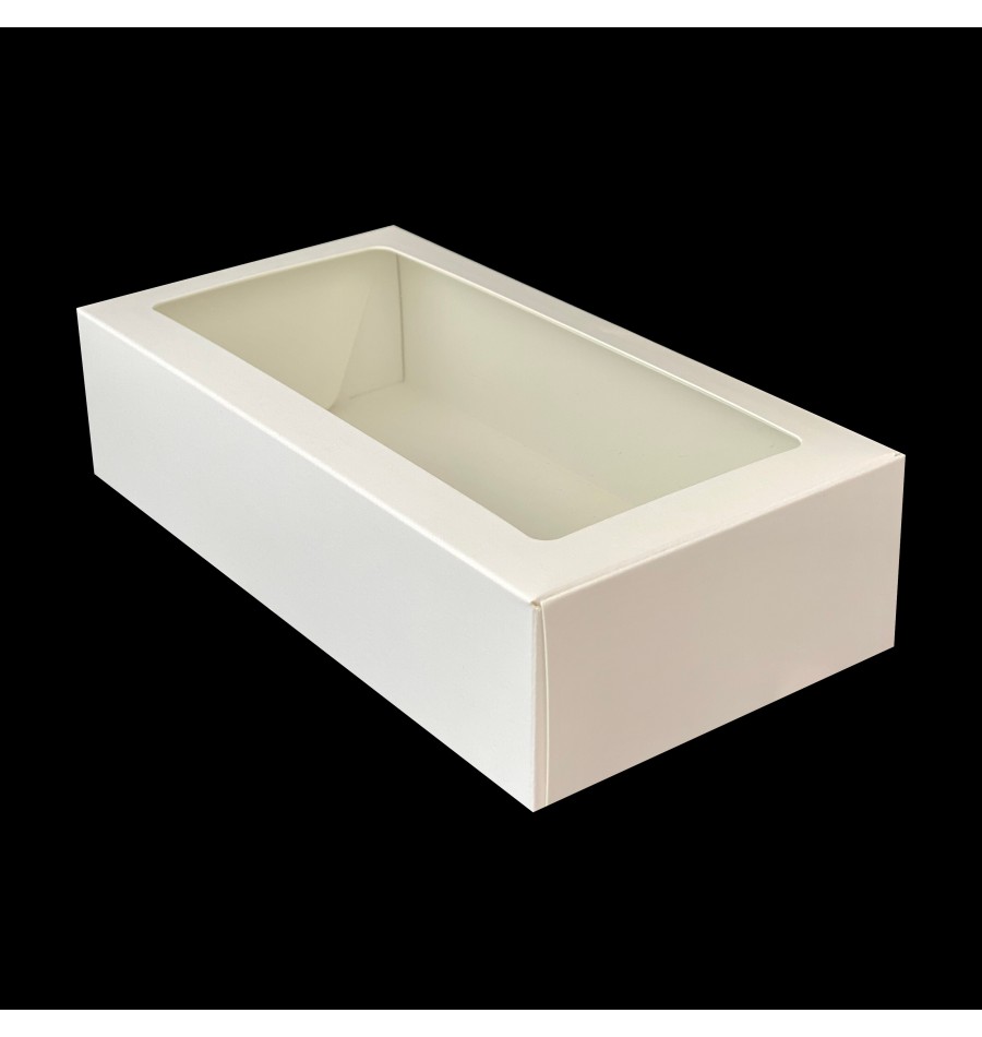 Eleganckie, jednoczęściowe opakowanie na wyroby cukiernicze wykonane z wysokiej jakości białego i sztywnego kartonu o gramaturze 300g/m2, co sprawia że pudełko jest stabilne, nie deformuje się i nie gniecie.